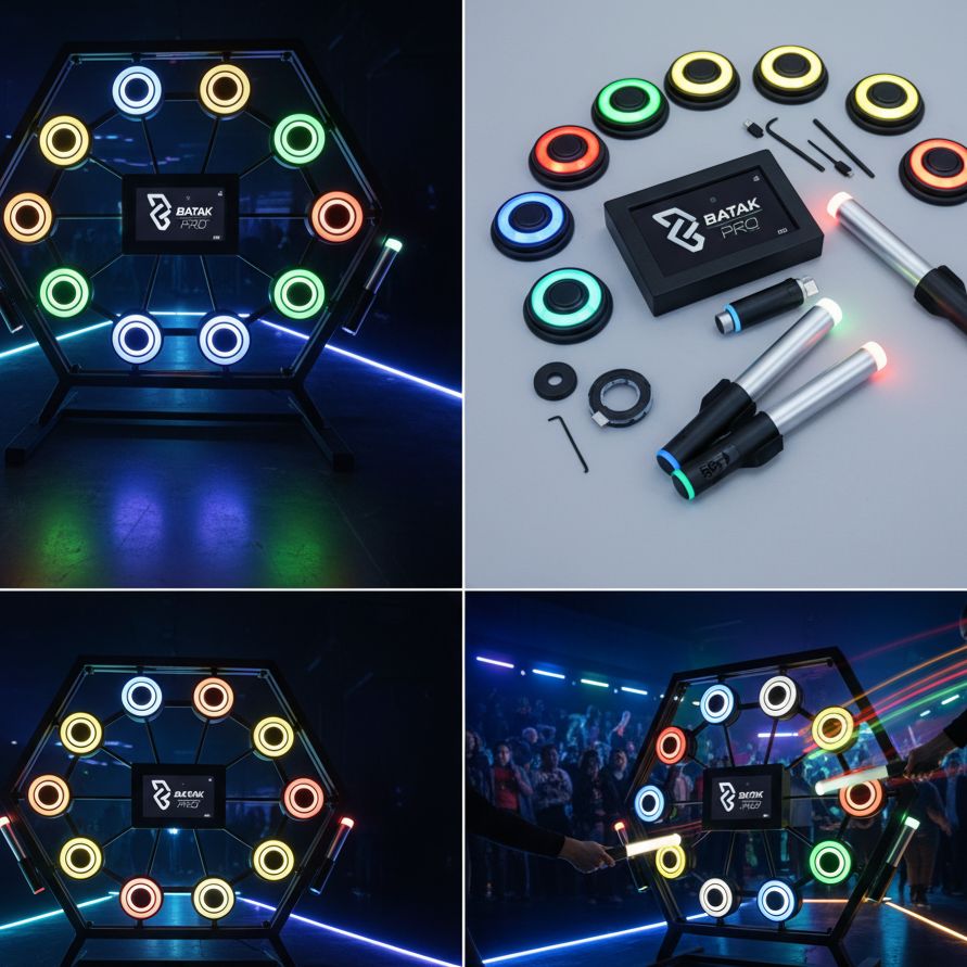 The Batak game is an interactive reaction-based activity designed to test players’ speed, reflexes, and hand-eye coordination. It consists of a wall or frame fitted with illuminated buttons that light up randomly. Players must hit the lights as quickly as possible, earning points for every successful reaction.